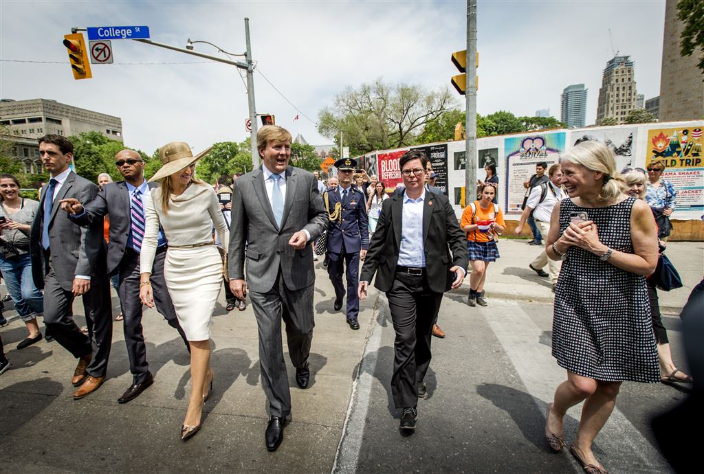 TORONTO – Koning Willem-Alexander en koningin Máxima hebben vrijdagmiddag in Toronto een ontmoeting gehad met de nationale vrouwen voetbalploeg. Die bereidt zich in de Canadese stad voor het op WK dat volgende week zaterdag met een wedstrijd tegen Nieuw-Zeeland van start gaat. Het koningspaar sprak kort met de speelsters. “Helaas kunnen we jullie wedstrijden niet in het echt zien, maar we zullen zeker televisie kijken”, aldus Willem-Alexander.