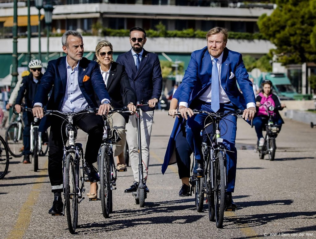 Koning Willem-Alexander en koningin Máxima hebben zich woensdag op een typisch Nederlandse manier verplaatst door Thessaloniki. Het paar stapte samen met onder anderen staatssecretaris Eric van der Burg en burgemeester Konstantinos Zervas op de fiets.