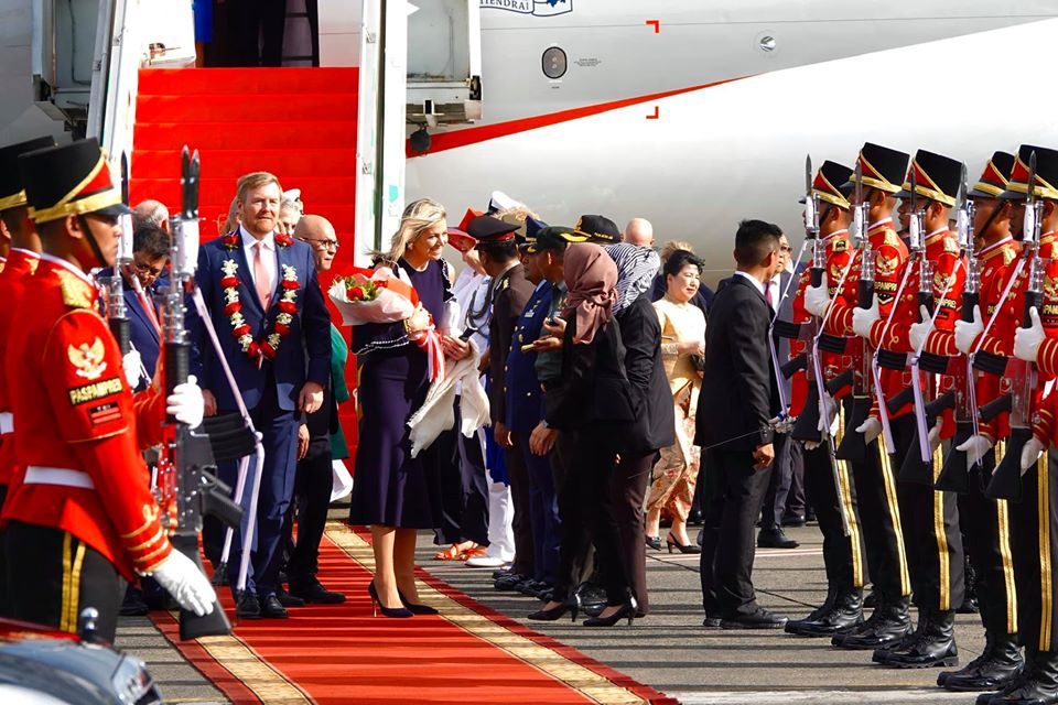 Op de luchthaven stond een erewacht klaar en was de Indonesische minister van Buitenlandse Zaken, Retno Marsudi, aanwezig ter verwelkoming. Zij is geen onbekende van het koningspaar. Marsudi was voor haar ministerschap van 2012 tot 2014 Indonesisch ambassadeur in Den Haag.