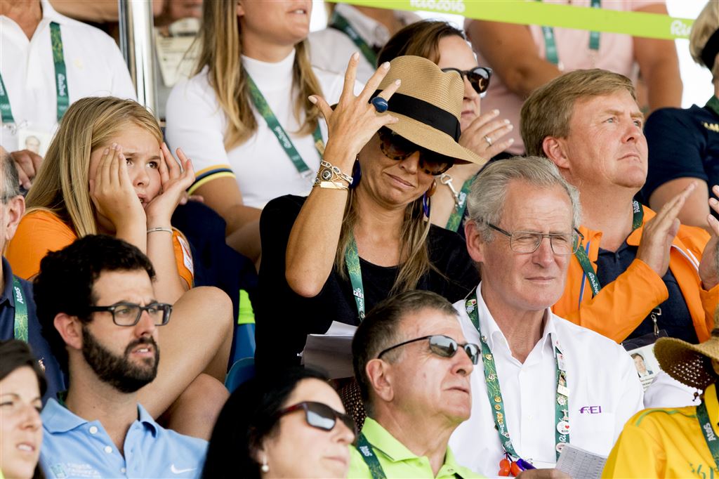 Koning Willem-Alexander, koningin Máxima en hun drie dochters Amalia, Alexia en Ariane lieten zich ook woensdag weer zien bij de Olympische Spelen in Rio de Janeiro. Het gezin woonde de teamfinale van de springruiters bij.