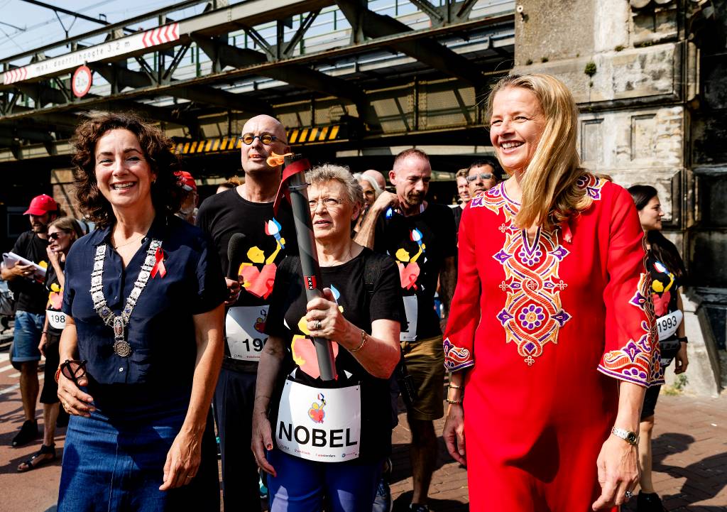 Onder de lopers bevonden zich ook Nobelprijswinnaar Françoise Barré-Sinoussi, die in de jaren tachtig het hiv-virus ontdekte, Timothy Brown, de enige persoon die is genezen van hiv, en vijfendertig mensen die kortere of langere tijd hiv hebben. Ze gaven de ‘Positive Torch’ tijdens de optocht aan elkaar door. Het startschot werd gegeven door burgemeester Femke Halsema.