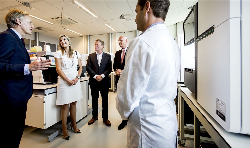 Er doen al 16 ziekenhuizen mee aan het verzamelen van de gegevens waarvan hypermoderne computers de DNA-gegevens uitlezen, en nog eens 25 hebben interesse getoond. Máxima wilde weten hoe de overige ongeveer 20 grotere ziekenhuizen over de streep konden worden getrokken. Het betrekken van patiënten is één manier. ,,Het is mooi als die zelf vragen of ze kunnen meewerken”, zei tweede directeur Hans van Snellenberg.