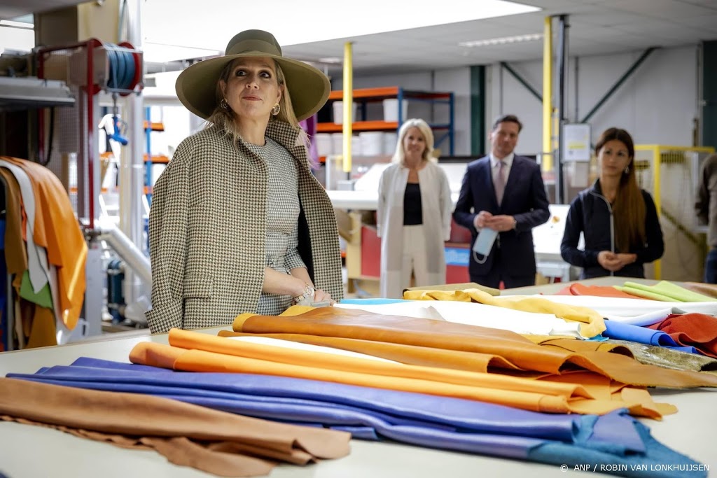 Koningin Máxima heeft woensdagmiddag het leerbewerkingsbedrijf Smit & Zoon in Weesp bezocht. Dat deed de koningin in het kader van het tweehonderdjarig bestaan van het bedrijf.