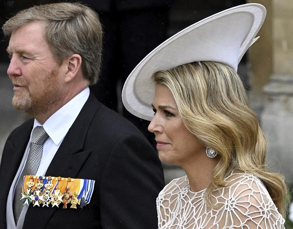 Koningin Máxima draagt zaterdag bij de kroning van koning Charles zowel een Nederlands als een Brits ontwerp. De japon is van Jan Taminiau en de hoed is een ontwerp van de Britse hoedenmaker Philip Treacy.