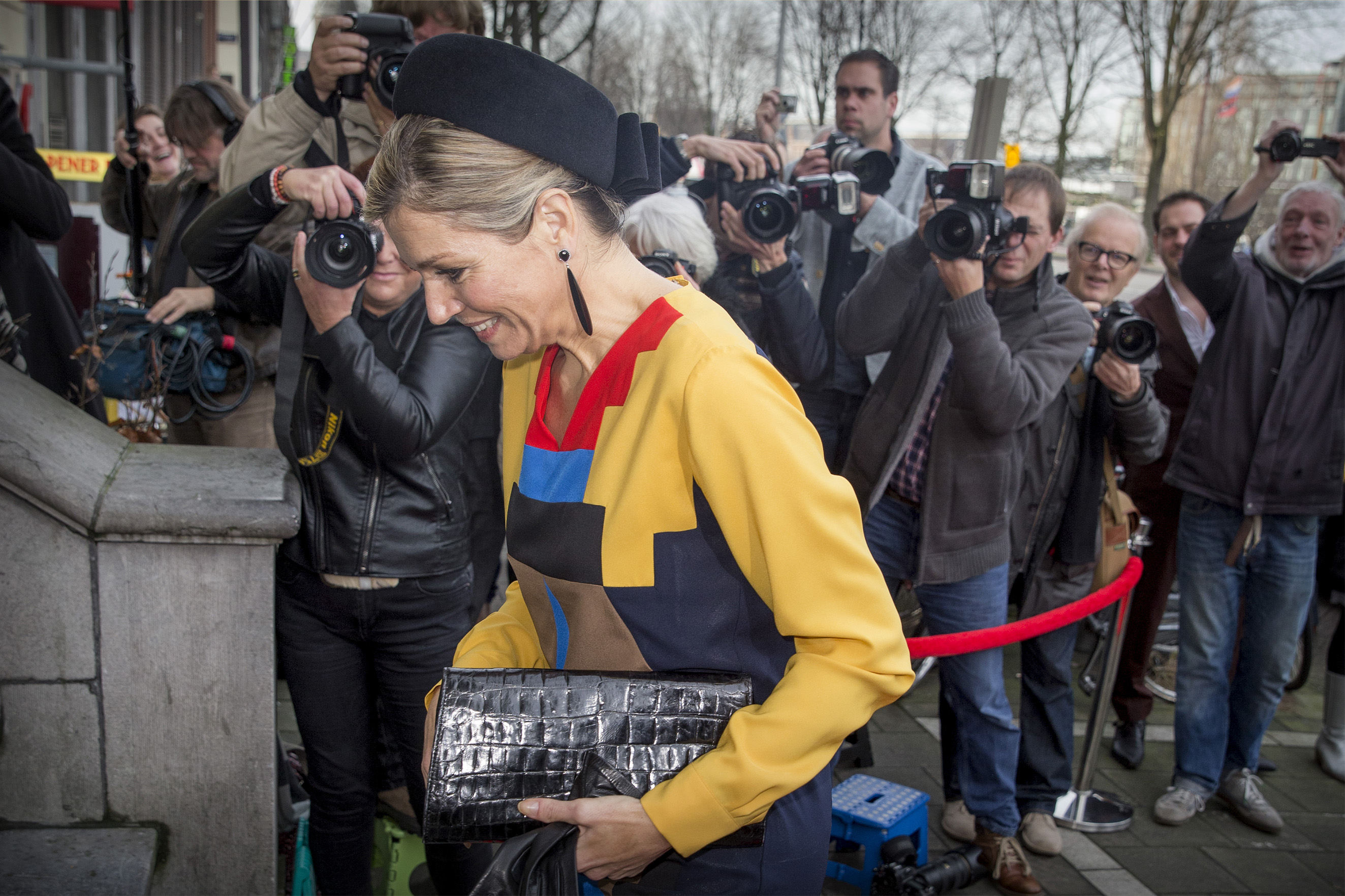 Koningin Máxima toog donderdagmiddag naar het Appel Arts Centre in Amsterdam voor de uitreiking van de Prix de Rome. De organisatie daarvan is in handen van het Mondriaan Fonds. Het ontwerp van het sprinkhaanjurkje, ‘grasshopper dress’ van het Nederlandse ontwerpersduo Spijkers & Spijkers lijkt misschien een knipoog naar de organisatie, ware het niet dat Mondriaan ‘De Stijl’ verliet omdat Theo van Doesburg diagonalen introduceerde in zijn werk.