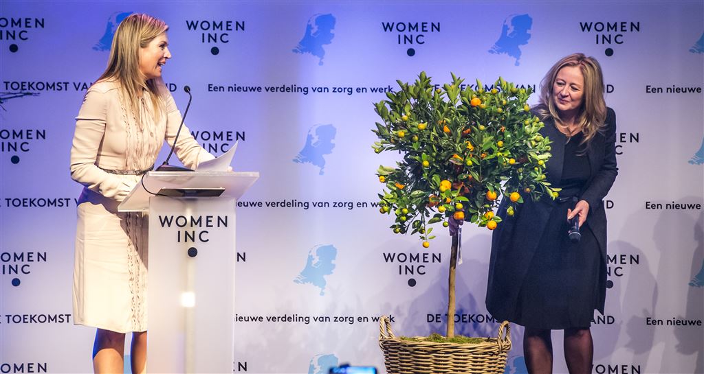 “Mevrouw Vaessen, ik denk dat ik het perfecte cadeau heb gevonden”, zei de vrouw van koning Willem-Alexander tegen Jannet Vaessen, de directeur van WOMEN Inc. “Graag bied ik u dit sinaasappelboompje aan. Mijn gelukswensen met tien jaar WOMEN Inc. Ik wens U groei en bloei toe in de toekomst!”