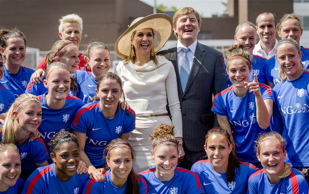Koningin Máxima heeft de voetbalvrouwen samen met koning Willem-Alexander in Toronto ontmoet tijdens hun staatsbezoek aan Canada eind mei.
