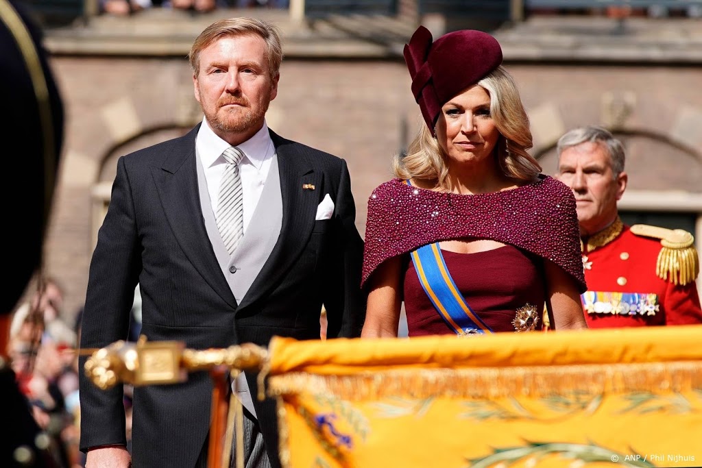 Máxima draagt een robijnrode kolomjapon van wollen crêpe met daarbij een cape. De hoed is een pillbox van velours, meldt de Rijksvoorlichtingsdienst. De koningin draagt over haar japon het Ordelint en de Ster van het Grootkruis der Orde van de Nederlandse Leeuw.