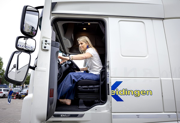Koningin Máxima heeft woensdag tijdens een werkbezoek aan Transport en Logistiek in Nieuwegein plaatsgenomen achter het stuur van een vrachtwagen. De vorstin kreeg een korte les en reed onder begeleiding al snel haar eerste meters. Op beelden is te zien dat ze haar schoenen uit had gedaan en op blote voeten het gas indrukte.