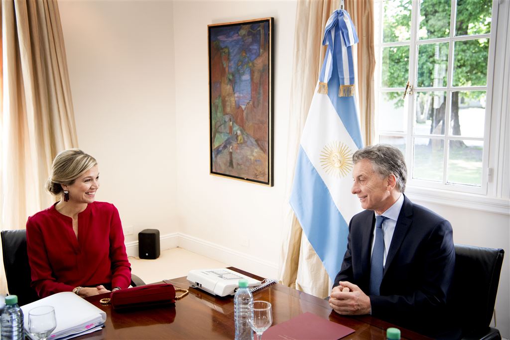 Macri, tot zijn verkiezing vorig jaar burgemeester van Buenos Aires en verklaard tegenstander van zijn voorganger als president Cristina Kirchner, heeft eerder dit jaar al een ontmoeting met Máxima gehad in Davos. Daar werd het bezoek dat de koningin namens de VN aan haar geboorteland brengt, in de verf gezet.