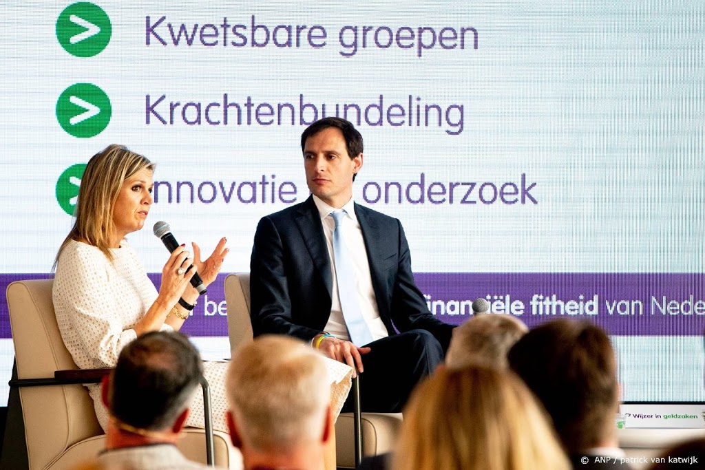 Koningin Máxima heeft dinsdag het jaarlijkse symposium van het platform Wijzer in geldzaken bijgewoond. In Den Haag ging ze met minister Wopke Hoekstra van Financiën in gesprek over het belang van het vergroten van financiële veerkracht en het voorkomen van geldproblemen.