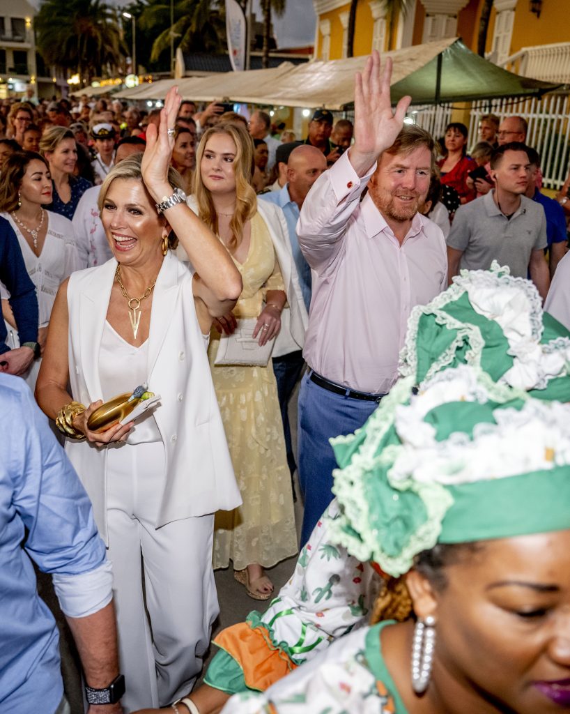 Hapjes proeven en onderdompelen in het culturele leven van Bonaire doet Máxima in een betaalbare witte outfit.