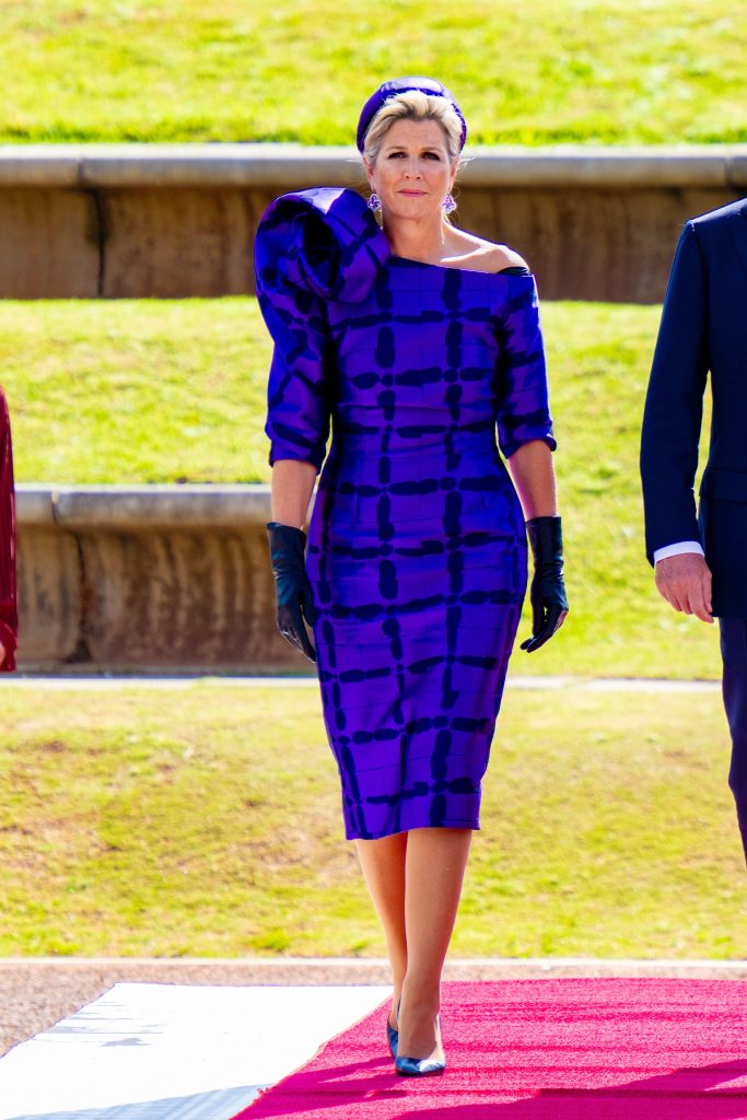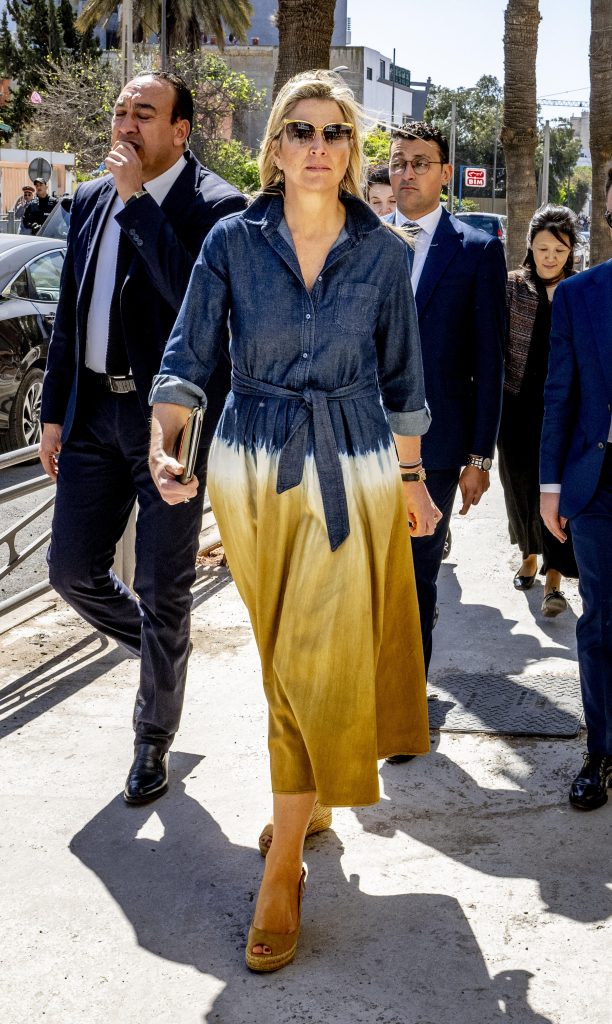 Voor een VN-bezoek aan Marokko trekt de koningin een nieuwe jurk van Max Mara uit de koffer. Een beetje casual, maar toch made for a queen.