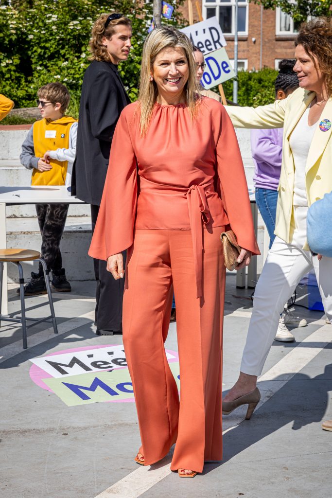 Van Oost-Vlieland naar Brazilië, Máxima neemt haar roze broekpak van Claes Iversen graag mee op reis.