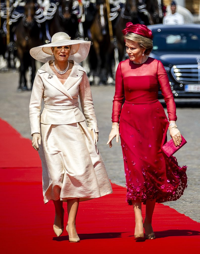 Naar België in een Belgisch ontwerp. Op de eerste dag van het staatsbezoek aan koning Filip en koningin Mathilde kiest Máxima voor haar favoriete ontwerper.