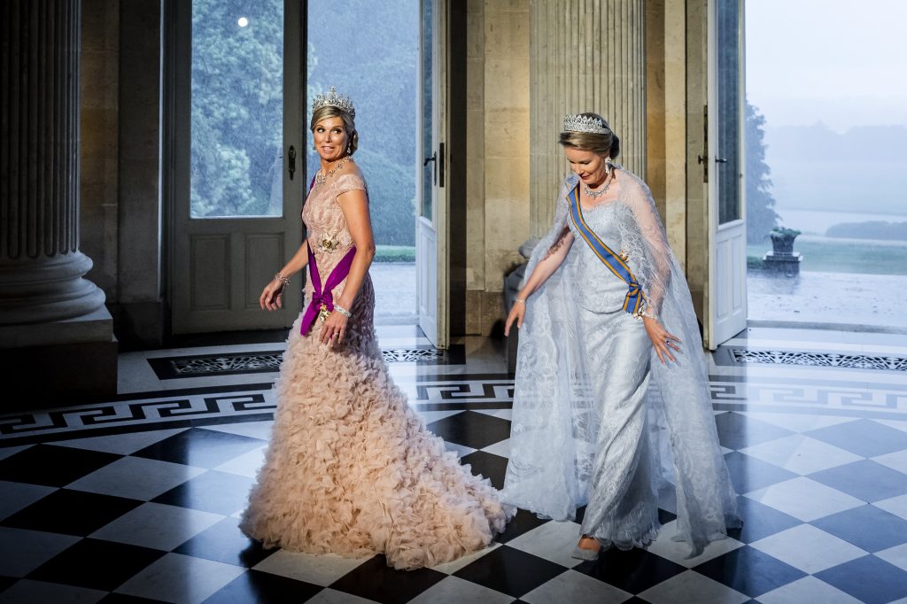 Máxima neemt Neerlands trots mee naar het staatsbanket in België in de zomer van 2023. In september vereeuwigde ze de roze tuledroom op de nieuwe staatsieportretten.