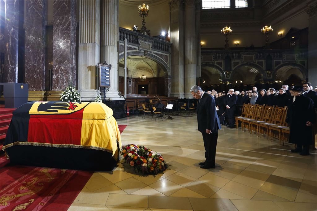 Prinses Beatrix is ook bij het militaire deel van de plechtigheid en heeft plaats direct achter de familie van de oud-president op de trappen van de Dom. De Duitse bondspresident Joachim Gauck had in samenspraak met de familie besloten een ‘Staatsakt’ te houden, een rouwplechtigheid in de kathedraal. Bij een staatsbegrafenis vindt de plechtigheid aan het graf plaats.