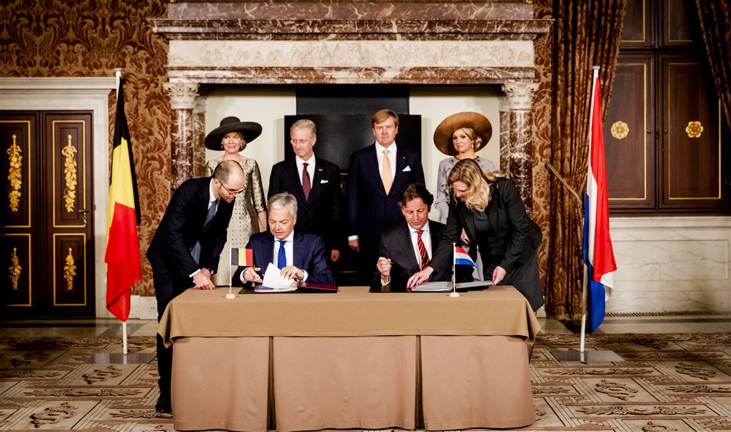 Het verdrag werd in het Koninklijk Paleis op de Dam in Amsterdam ondertekend door minister Bert Koenders van Buitenlandse Zaken en zijn Belgische ambtgenoot Didier Reynders. Dit gebeurde in het bijzijn van koning Willem-Alexander, koningin Máxima, koning Filip en koningin Mathilde. Daarmee werd letterlijk inhoud gegeven aan het thema van het driedaagse staatsbezoek: ‘grensoverschrijdende samenwerking’.
