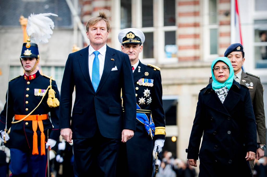 Zaken en plezier stonden op het menu van het diner dat minister-president Mark Rutte donderdagavond in de Trêveszaal aan het Binnenhof aanbood aan president Halimah Yacob van Singapore en haar man. Bij het regeringsdiner waren ook koning Willem-Alexander en koningin Máxima te gast.
