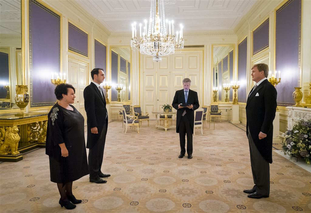 DEN HAAG – Koning Willem-Alexander heeft dinsdagavond de nieuwe staatssecretaris van Infrastructuur en Milieu, Sharon Dijksma, en de nieuwe staatssecretaris van Economische Zaken, Martijn van Dam, beëdigd. De plechtigheid was om 19.00 uur op Paleis Noordeinde in Den Haag.