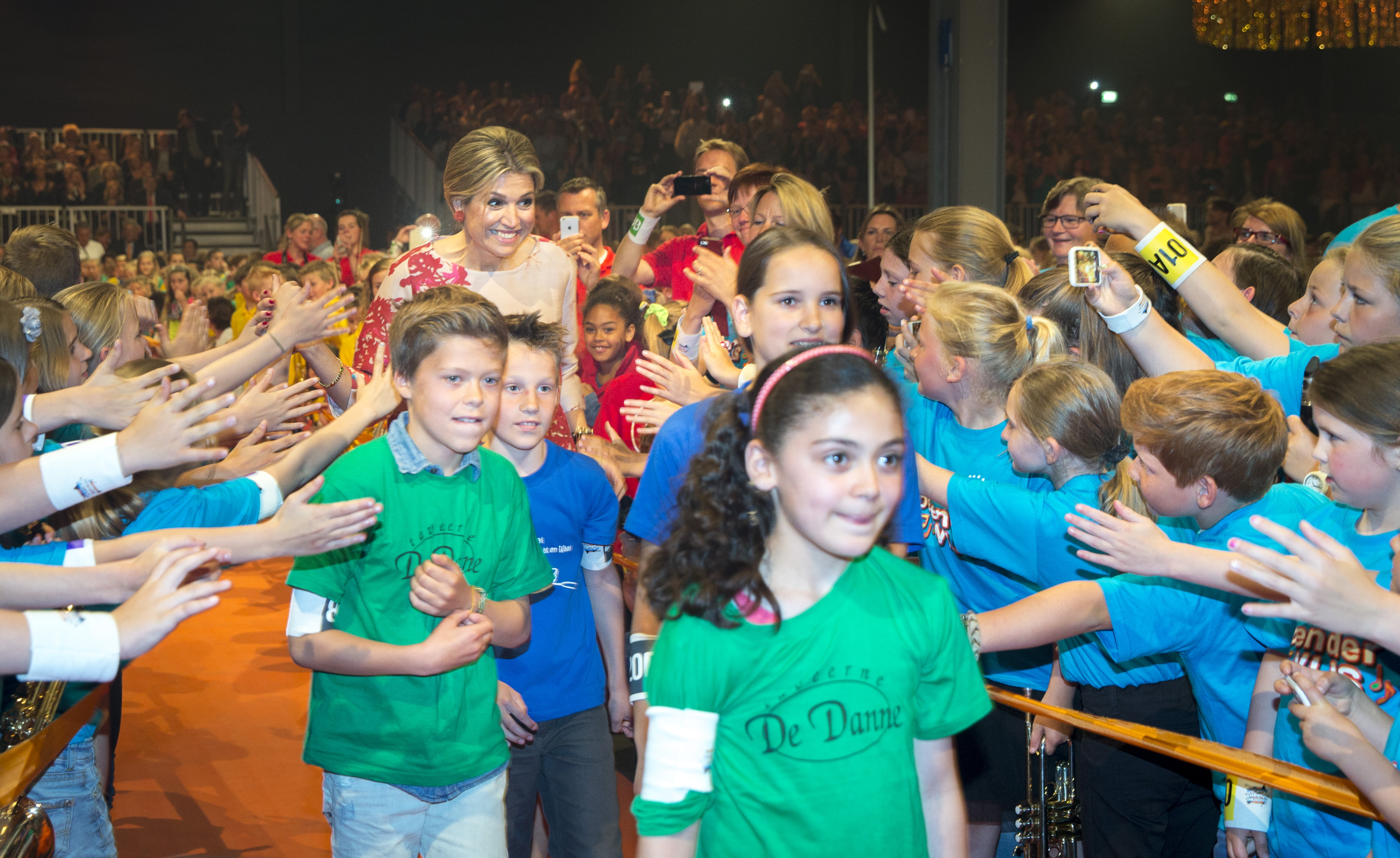 UTRECHT – Bijna 2000 schoolkinderen hebben in de Jaarbeurs in Utrecht koningin Máxima met oorverdovend gejuich begroet voorafgaand aan ‘Het Concert’. Dat is de afsluiting van het programma Kinderen maken muziek. Alle kinderen, afkomstig uit het hele land, zijn deelnemers aan de slotuitvoering.