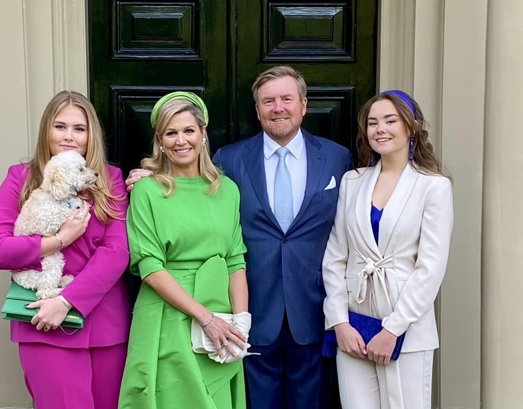 Prinses Ariane draagt een broekpak van Max & Co, aldus Droogendijk. Amalia heeft een groene tas van het merk Jacquemus bij zich. Droogendijk vindt het leuk dat de Oranjes opnieuw onderling accessoires hebben geruild. “Máxima heeft een tasje bij zich dat Ariane vorige week droeg. Het tasje van Ariane zagen we eerder bij Máxima.”