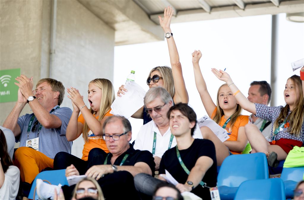 Amalia zat tussen haar vader en moeder in op de tribune om onder anderen Jeroen Dubbeldam en zijn paard Zenith aan te moedigen tijdens de kwalificatie springen. De prinsesjes zijn alle drie gek op paardrijden en hockey en bewijzen in Rio de Janeiro net zo hard te kunnen juichen als hun ouders.
