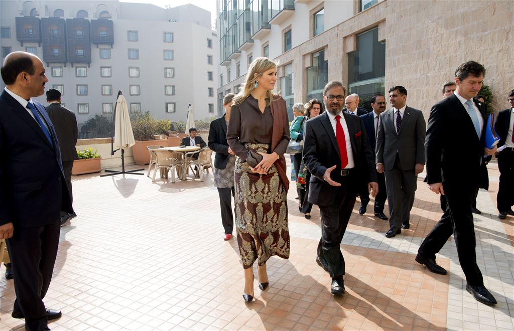 De hele dag stond in het teken van gesprekken over de Pakistaanse goede voornemens, obstakels, regelgeving en bereikte resultaten. De koningin gebruikte daarvoor zoals bij haar VN-bezoeken gebruikelijk, een lange reeks aaneengeschakelde rondetafelgesprekken, waarbij ze zelf in haar zwaar bewaakte hotel in Islamabad van vergaderzaal naar vergaderzaal pendelde. Ook stond er een ontmoeting op de agenda met premier Nawaz Sharif, met wie ze haar eerste indrukken van het bezoek besprak.