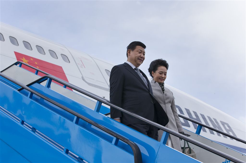 SCHIPHOL – De Chinese president Xi Jinping heeft zaterdagmiddag op de Polderbaan van Schiphol kennis kunnen maken met het wispelturige Nederlandse weer. Er stond een ijskoude wind die in de Haarlemmermeerpolder vrij spel had. Pas toen de president en zijn echtgenote Peng Liyuan in hun auto stapten, brak er een waterig zonnetje door.