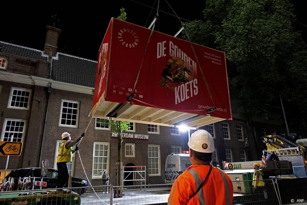 Het over het dak van het museum hijsen van het 2800 kilo wegende en keurig in een kist verpakte rijtuig, is met militaire precisie uitgevoerd door Koninklijke Saan. Veel speelruimte was er niet op de hoek van de Nieuwezijds Voorburgwal en de Sint Luciënsteeg, tussen een lantaarnpaal, een boom en de bovenleiding van de tram. Op de binnenplaats van het museum, waar de Gouden Koets de komende maanden in een eigen glazen behuizing is te zien, moest ook voorzichtig worden gemanoeuvreerd. Een verkeerde draai en de kist zou tegen de ramen en muren slaan.