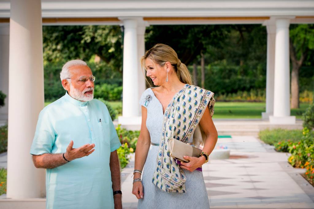 Koningin Máxima is maandagmiddag door de Indiase premier Narendra Modi ontvangen in zijn residentie Panchavati, ook wel 7, Lok Kalyan Marg genoemd naar het adres in New Delhi.