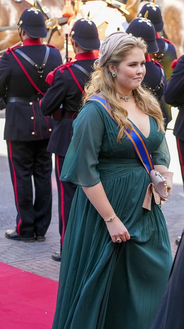 Prinses Amalia heeft geen designerjurk aangetrokken voor Prinsjesdag. Koningshuisverslaggever Rick Evers schrijft op Twitter dat de donkergroene jurk van het populaire merk ASOS is en 107,99 euro heeft gekost.