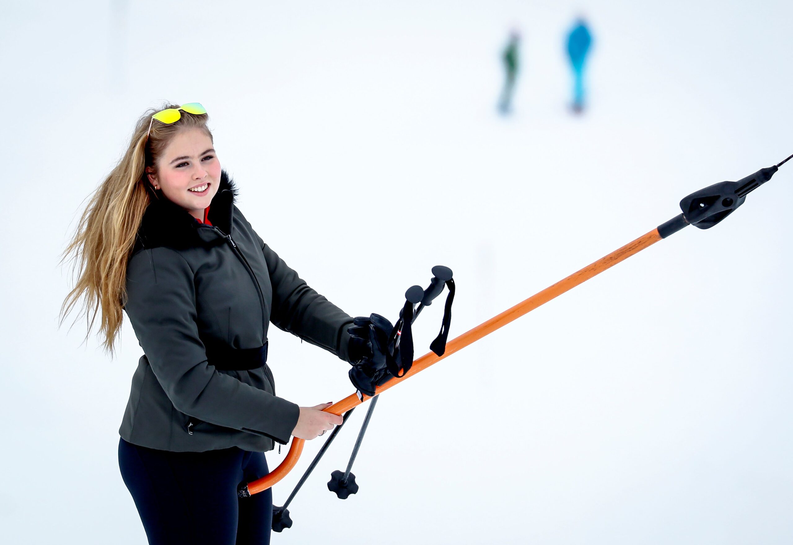Dat zou echter betekenen dat de fotografen lang moeten wachten tot een skilift de skiënde Oranjes weer naar boven heeft gebracht voor de volgende afdaling. Het zou ook betekenen dat het fotomoment erg lang zou duren en dat is ook niet de bedoeling. Amalia moest zich daarom behelpen, maar zorgde er wel voor dat ze zo goed mogelijk voor de dag kwam.