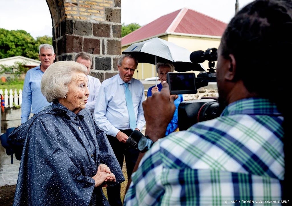 Ook prinses Beatrix gaat mee met haar tijd. Als koningin waren camera’s vrijwel altijd taboe bij gesprekken met de pers na afloop van staats-en streekbezoeken. Vrijdag echter gaf Beatrix in Oranjestad op Sint Eustatius haar eerste persgesprek met draaiende camera’s. In de regen nog wel, bij de poort van een kerkruïne.