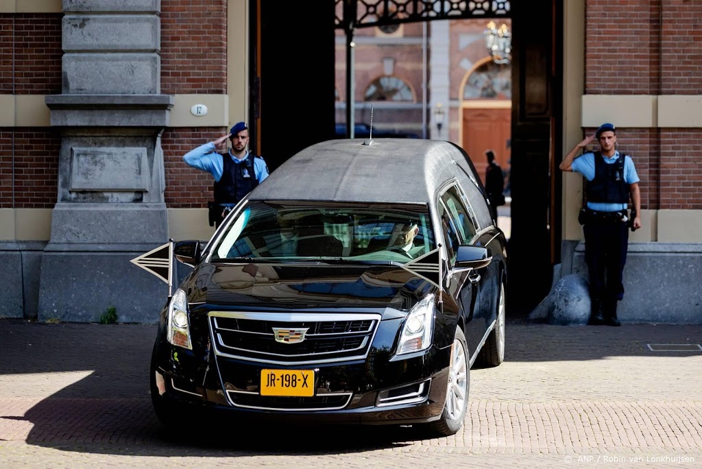 De koninklijke familie had zich donderdagochtend verzameld in paleis Noordeinde, waarna de Oranjes de kist vanaf de Koepel van Fagel begeleidden naar het koetshuis voor de plechtigheid. Die nam ruim een uur in beslag, waarna een ontvangst volgde in het paleis.