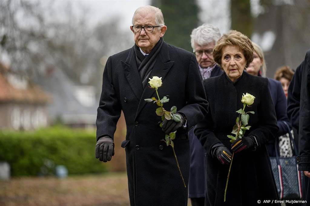 Prinses Margriet en haar echtgenoot Pieter van Vollenhoven hebben maandag de herdenking van de ontruiming van de joodse psychiatrische instelling Het Apeldoornsche Bosch in 1943 bijgewoond. De twee legden ook gele rozen neer bij het monument in Apeldoorn.