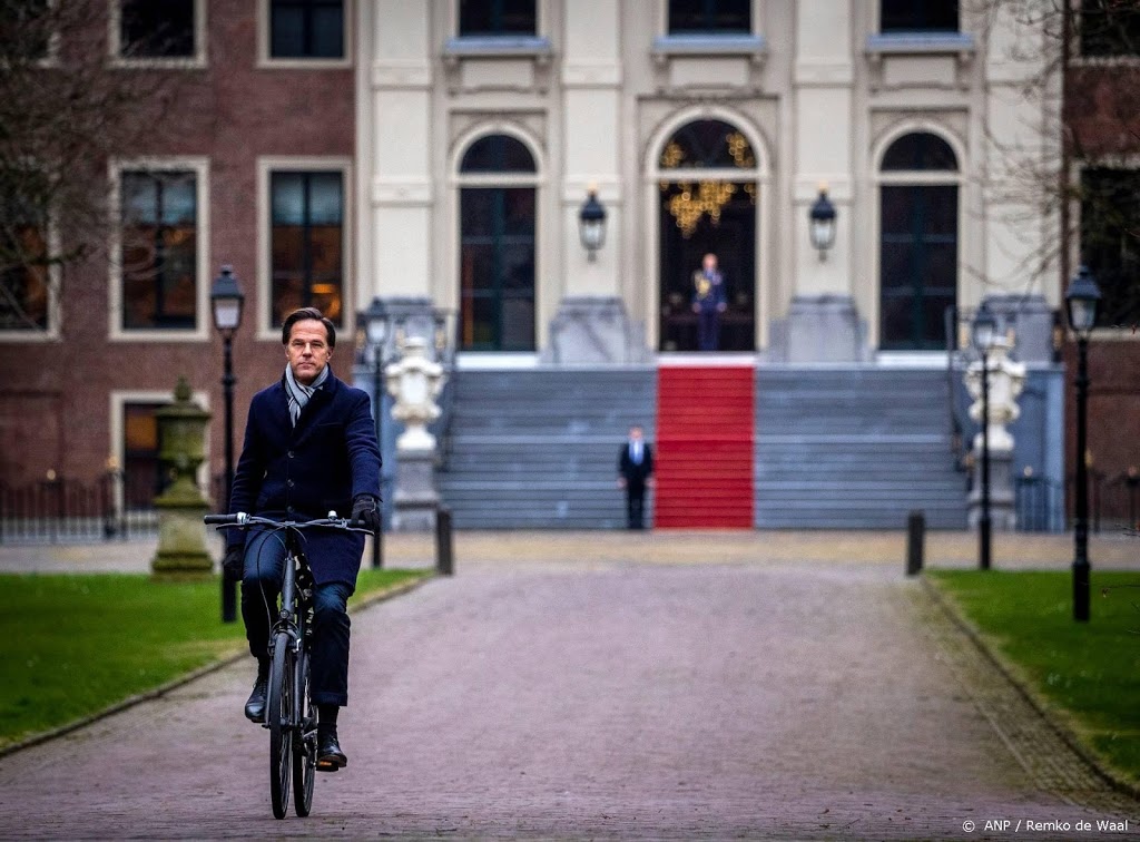 Eerder vrijdag stond de premier de pers te woord. Aansluitend vertrok hij per fiets, onder luid gejoel van omstanders, vanaf het Binnenhof naar de koning. Die heeft de ontslagaanvraag in overweging genomen en de minister-president, ministers en staatssecretarissen verzocht al datgene te blijven verrichten, wat zij in het belang van het koninkrijk noodzakelijk achten, meldt de RVD.