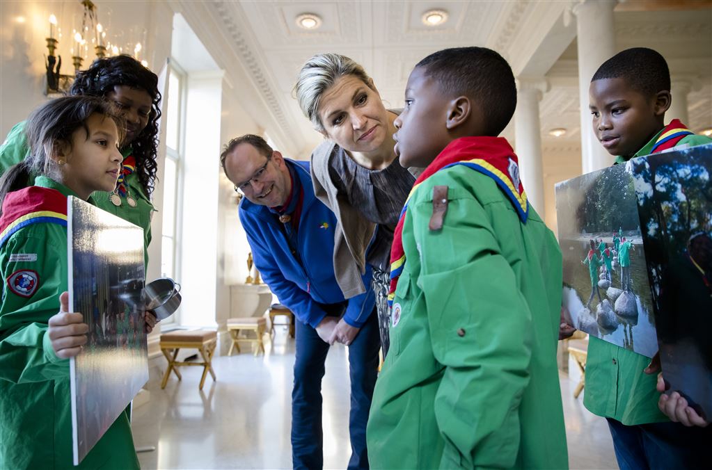 Koningin Máxima heeft dinsdagmorgen bezoek gehad van 25 scouts. De gasten en hun begeleiding gaven op Paleis Noordeinde uitleg over de verschillende maatschappelijke projecten van Scouting Nederland.