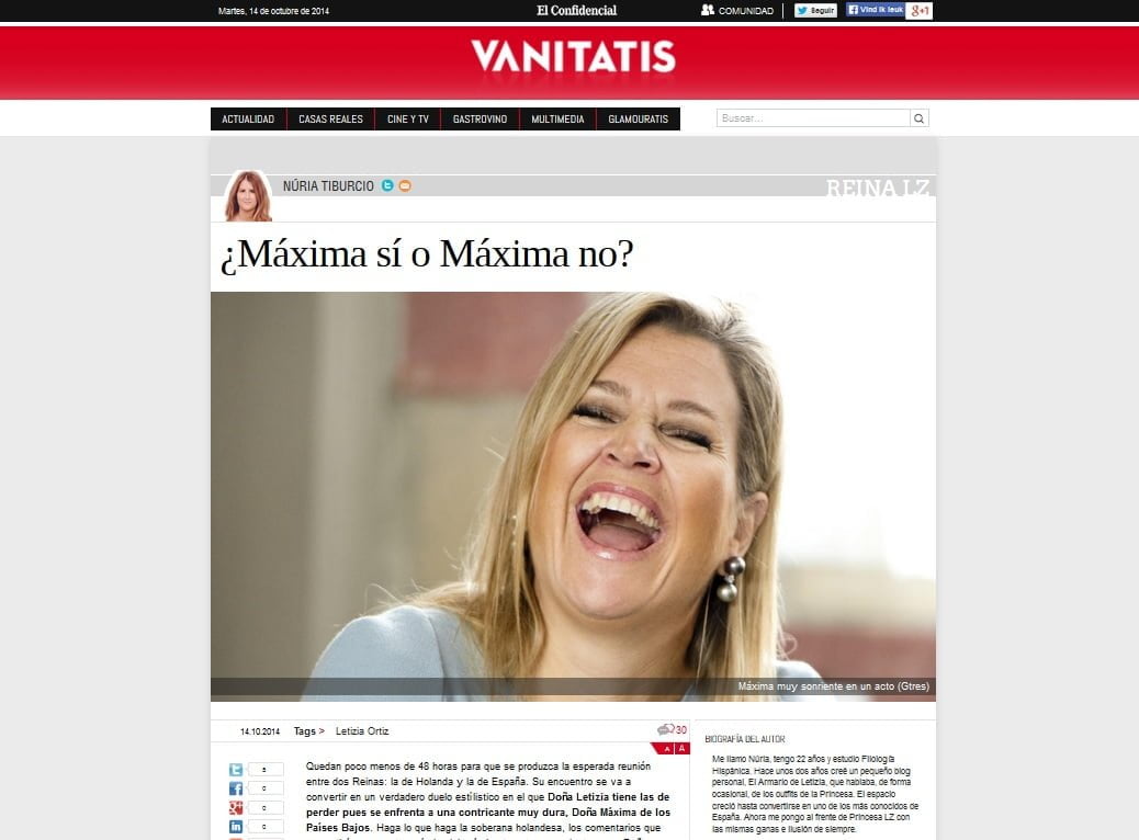 De kwaliteiten die de Spanjaarden zo prijzen in Máxima zouden ze echter niet accepteren als ze Spaans koningin was. El Confidencial somt er een aantal op: de internationale rol bij de VN, de kleding van buitenlandse ontwerpers, de trouwjurk van Valentino, het vakantiehuis in Griekenland, het uitbundige gedrag zoals bij het onderonsje met Barack Obama in Normandië, haar populariteit ten koste van andere leden van het koningshuis.