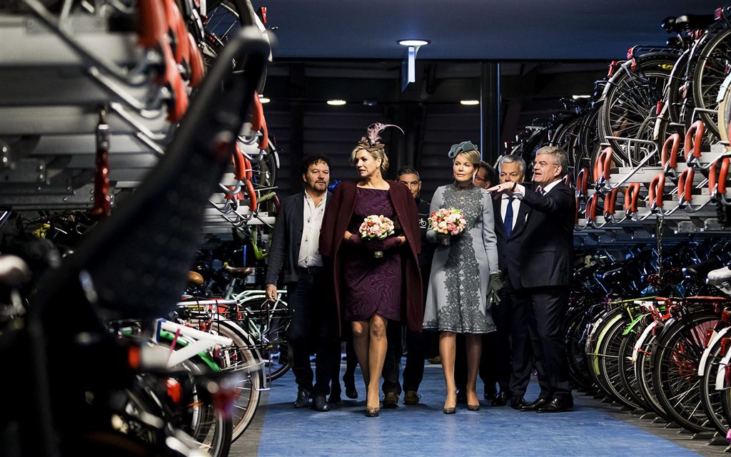 Daarna kregen de koninginnen in het naastgelegen stadskantoor tekst en uitleg over de ontwikkeling van het stationsgebied en werd een bezoek gebracht aan de fietsenstalling. Het station is gebouwd door de Nederlandse tak van het Belgische bouwbedrijf Besix.