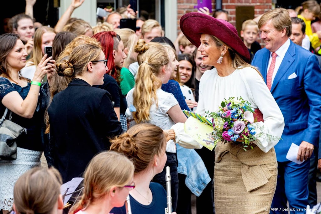 Koning en koningin kwamen handen tekort om iedereen te begroeten, en Máxima baande zich een weg door het persvak om te zwaaien naar een groep kinderen die haar aanwezigheid wel heel luidkeels duidelijk maakte. Het zwaaien werd beloond met een bos bloemen, die de koningin dankbaar in ontvangst nam.