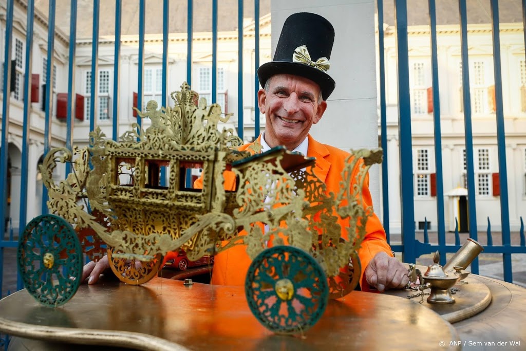 Johan Vlemmix is de enige oranjefan aan de poort bij paleis Noordeinde. De Brabander reed in alle vroegte vanuit Zuid-Limburg naar Den Haag om Prinsjesdag niet te hoeven missen. Met een goudkleurige zwemband, met daarop een miniatuur van de Gouden Koets, hoopt hij een glimp van het koninklijk paar te vangen. “Ik dacht met al die commotie rondom de koets: ik wil hem toch gewoon laten rijden vandaag.” Vlemmix loopt dezelfde route als de Gouden Koets normaal rijdt. Van het paleis via de Grote kerk door naar de Ridderzaal dus. Of hij zijn route mag afmaken van de politie moet nog blijken. Voorlopig mag hij blijven staan.