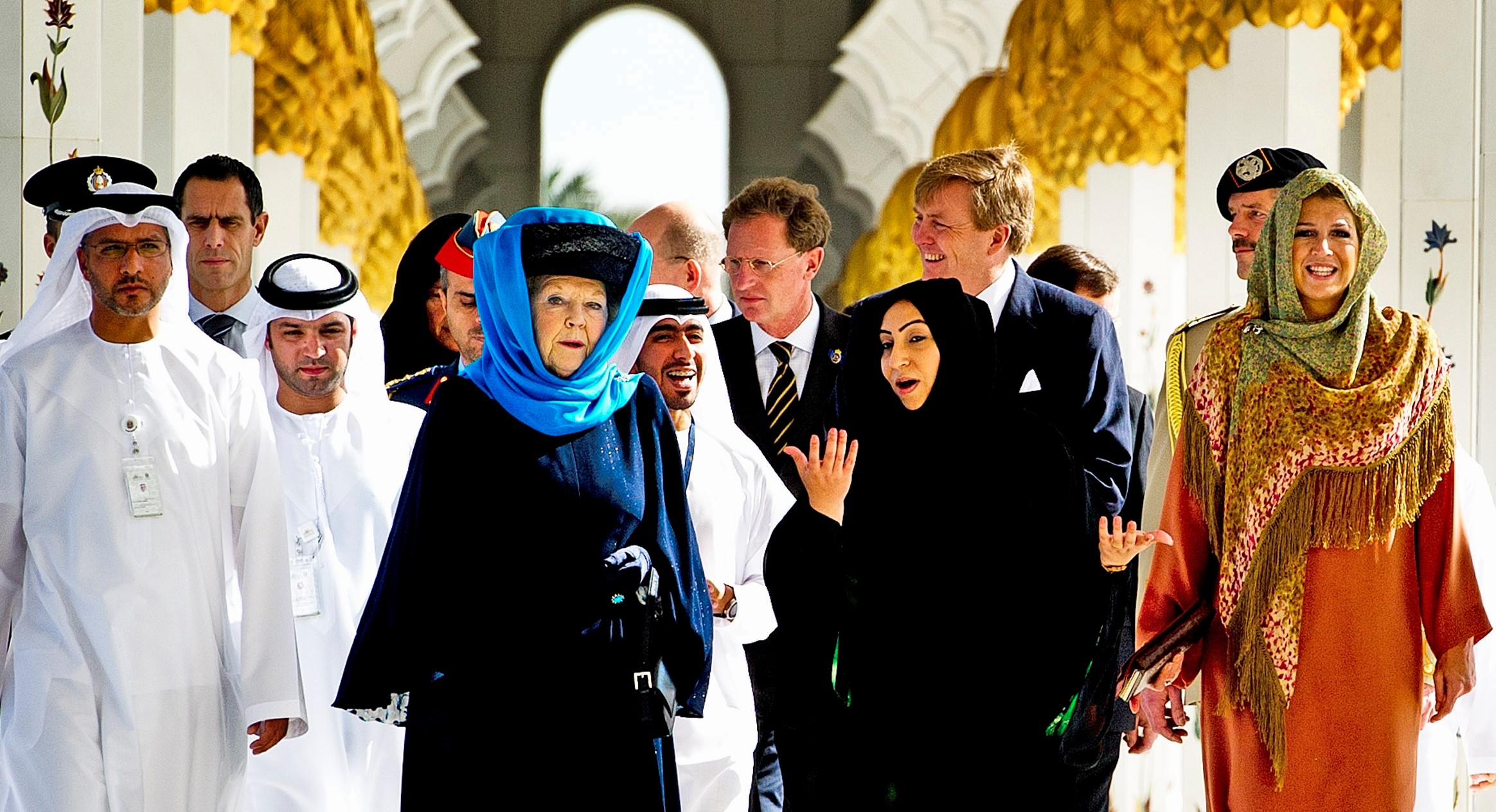 Ondanks de gedegen voorbereidingen gaat het heus nog weleens mis. Zoals in 2009, wanneer Máxima keurig een zwarte hoofddoek bij zich heeft voor een bezoek in Abu Dhabi aan de Sheikh Zayed bin Sulta Al-Nahayan moskee. Tijdens de wandeling van de auto naar de ingang slaat ze hem alvast om, maar bij het betreden van het gebouw heeft de gastheer een vervelende boodschap voor haar. De hoofddoek voldoet niet, ze moet ‘fully covered’ zijn. Oftewel: volledig bedekt. Als Máxima ergens een hekel aan heeft, is het een kledingwissel voor het oog van de camera, maar nu moet ze er toch echt aan geloven. Terwijl de camera’s flitsen, worstelt ze zich in een abaya, een wijd gewaad van nek tot teen. Dit had nooit mogen gebeuren en dat valt toch echt te wijten aan een onvolledige voorbereiding. Een paar jaar later, in 2012, wordt de moskee opnieuw bezocht. Dit keer heeft de prinses bij aankomst al de juiste kleding aan. Koningin Beatrix ook, maar zij heeft besloten om een persoonlijke touch toe te voegen. Dat resulteert in een wonderlijke combinatie van hoed én hoofddoek. De vergelijking met fee Mooiweertje uit de Disney-tekenflm Doornroosje wordt al snel gemaakt, maar de bijzondere keuze van de vorstin klopt natuurlijk wel. Een diplomatiek gebaar werkt alleen als je daarbij niet over je eigen grenzen gaat.