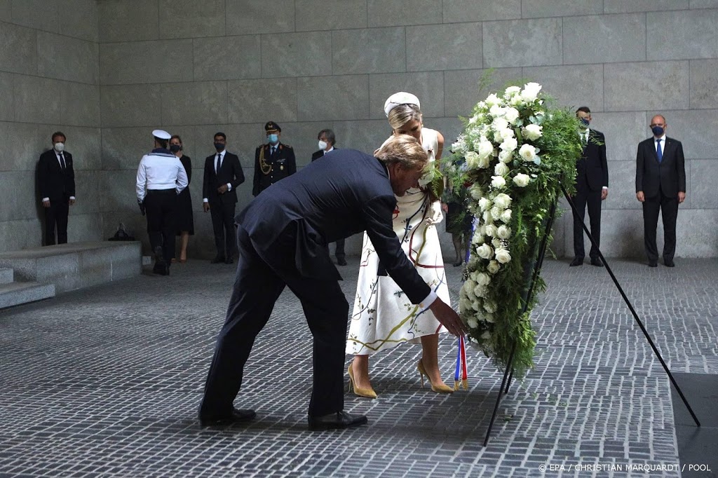 Koning Willem-Alexander en koningin Máxima hebben maandagmiddag tijdens hun staatsbezoek in Berlijn een krans gelegd. Dat deden ze bij de Neue Wache, een monument voor slachtoffers van oorlog en geweld.