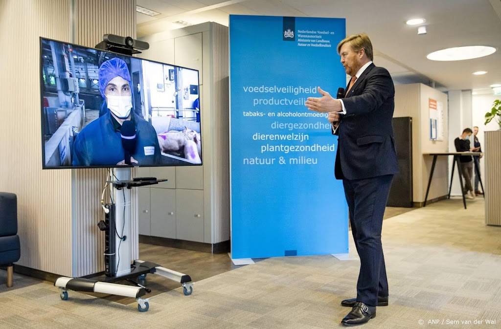 Koning Willem-Alexander heeft donderdagmiddag via een live-videoverbinding een kijkje genomen in een slachthuis in IJsselstein. Tijdens een werkbezoek aan de Nederlandse Voedsel- en Warenautoriteit (NVWA) in Utrecht was de vorst daardoor getuige van het lossen van een varkenstransport.