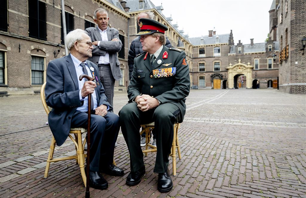 Na de ceremonie waar veteranen hun persoonlijke verhalen vertelden in de Ridderzaal in Den Haag, nam koning Willem-Alexander nog even de tijd om een aantal oud-militairen te spreken op het Binnenhof.