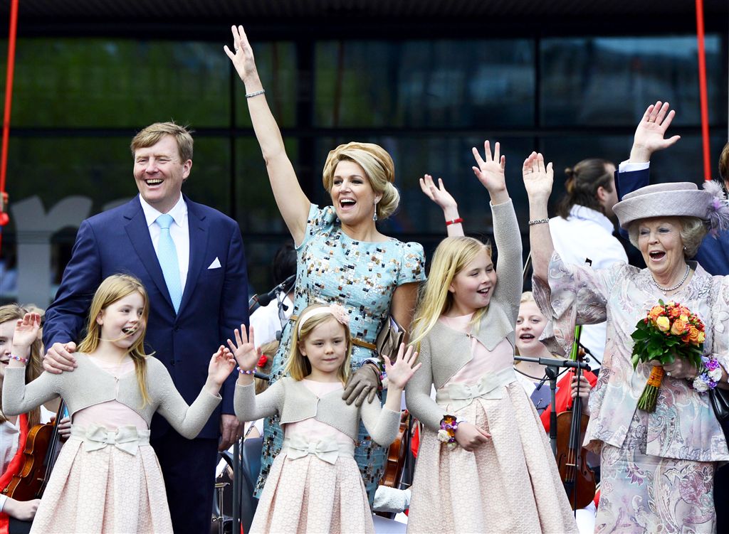 Na zijn korte speech zong de koninklijke familie het Wilhelmus. Daarna werd Willem-Alexander toegezongen. Het publiek bracht uit volle borst Lang zal hij leven ten gehore voor de koning, die zondag jarig is.