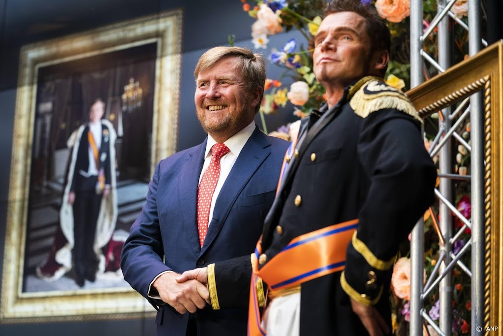 Bij de ceremonie klom een acteur verkleed als Willem I uit een gouden lijst waarna de twee generaties elkaar konden begroeten. Willem-Alexander onthaalde zijn oudgrootvader enthousiast maar die bleef in zijn rol zoals hij ‘afgebeeld’ stond en praatte niet terug.