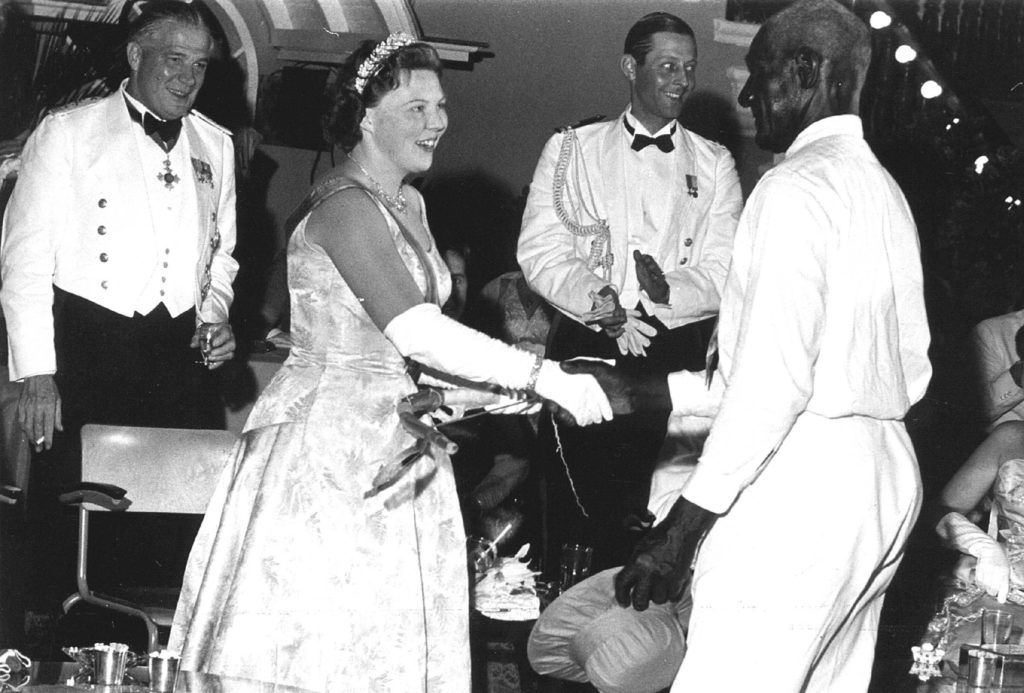 Op Fort Amsterdam in Willemstad wordt de 20-jarige Beatrix ontvangen voor een galareceptie.