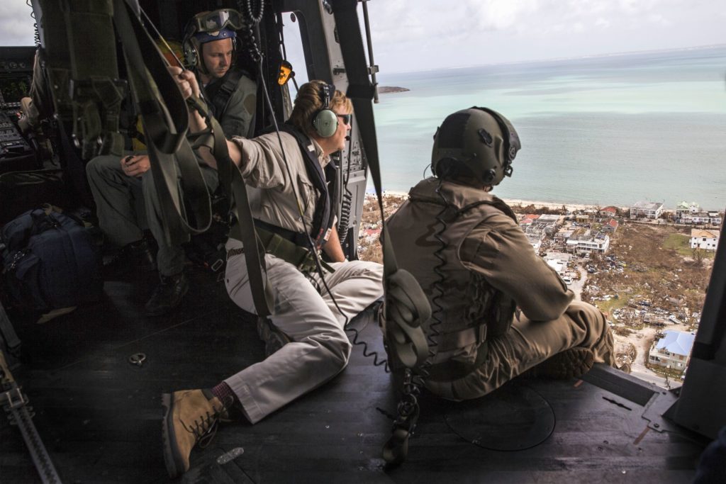 Willem-Alexander bekijkt vanuit een helikopter de schade die orkaan Irma heeft aangericht op Sint Maarten. Ook Saba en Sint Eustatius worden bezocht door de koning. Later dat jaar komt hij nogmaals terug, in gezelschap van Máxima.